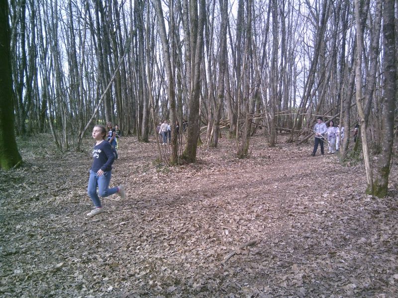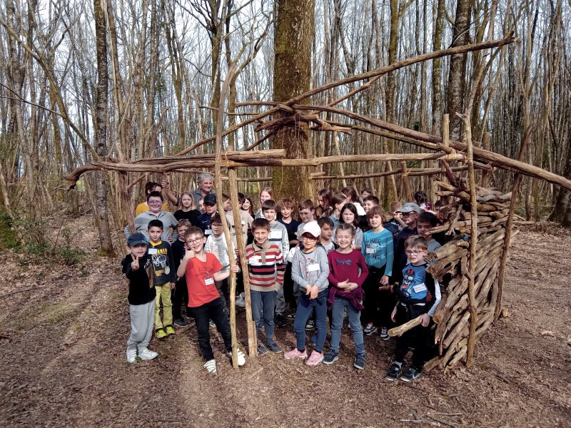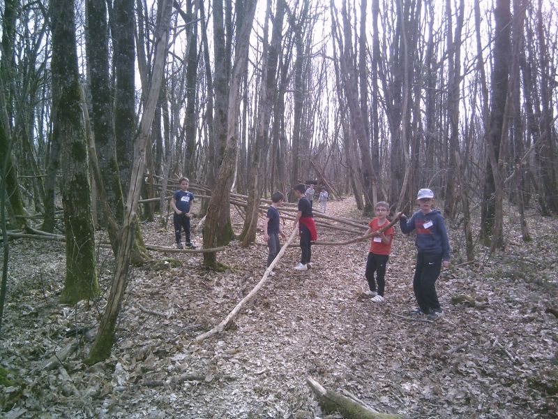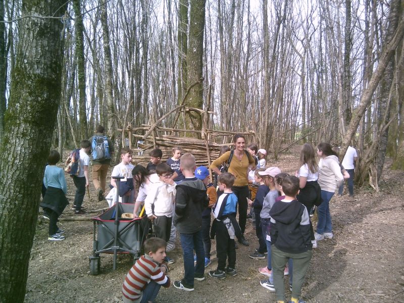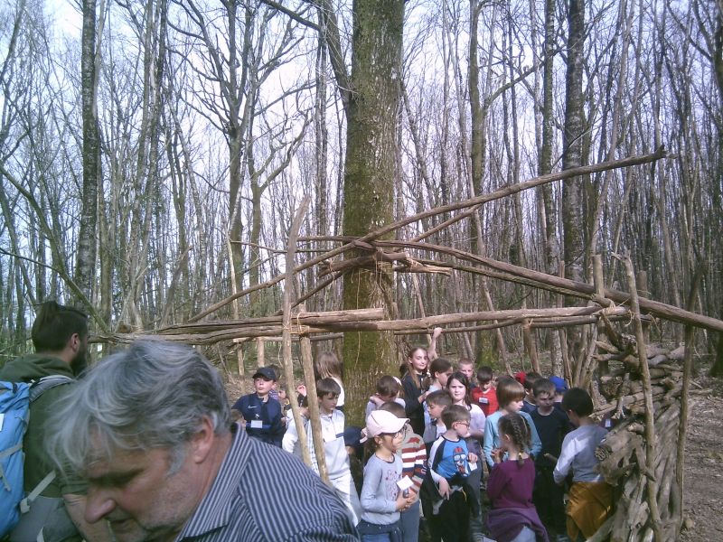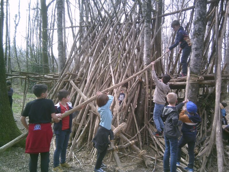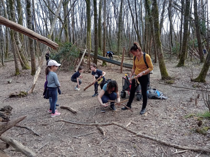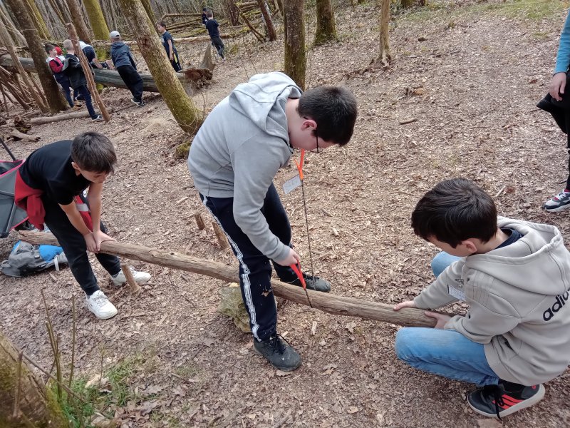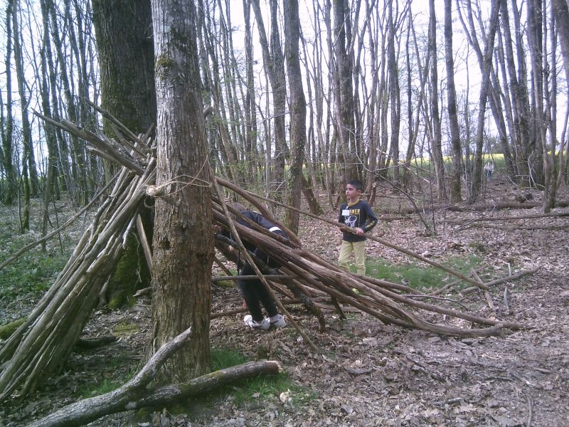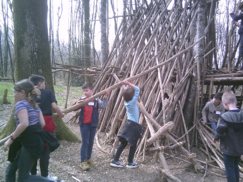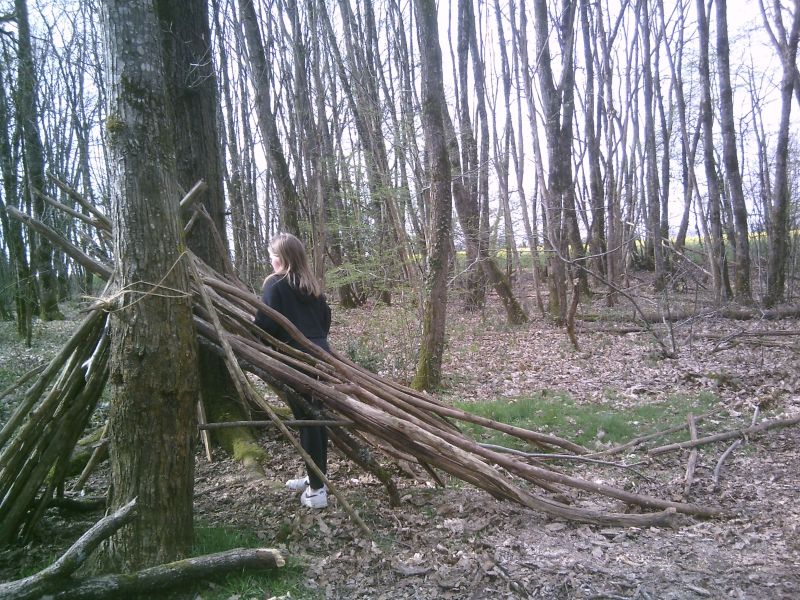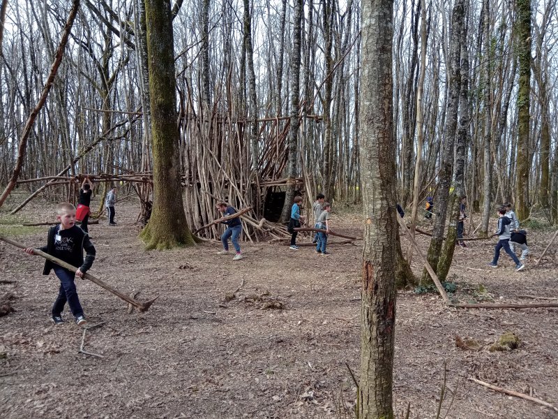 En fin de journée nous sommes partis en forêt pour ceux qui le souhaitaient. Nous avons coupé du bois à la tronçonneuse à main. Nous avons aussi ramassé du bois, et on a pu continuer des cabanes.