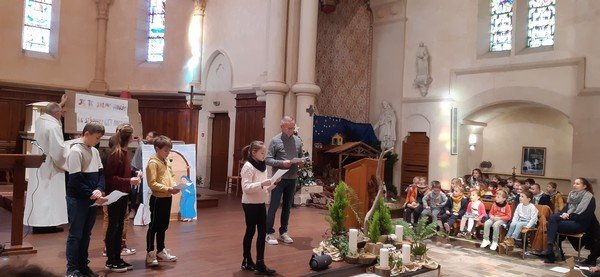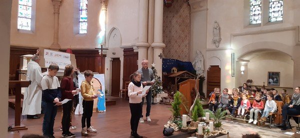 Le chant “Voudrais-tu Marie?” et les explications du célébrant ont permis aux élèves de mieux comprendre ce récit important de l’histoire biblique et de se préparer au temps de Noël…